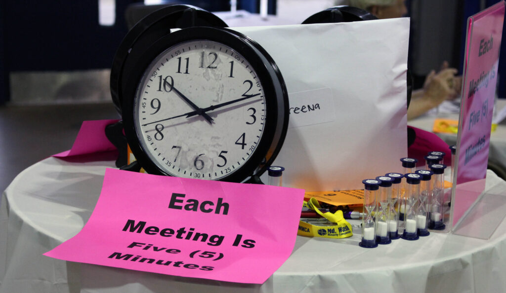 One-to-One sessions are at 9:00, 10:00 and 11:00. Each session is thirty-five minutes long and you will meet with six different companies during the session. Each meeting is five minutes in length. You can sign-up to participate in as many sessions as you like.
